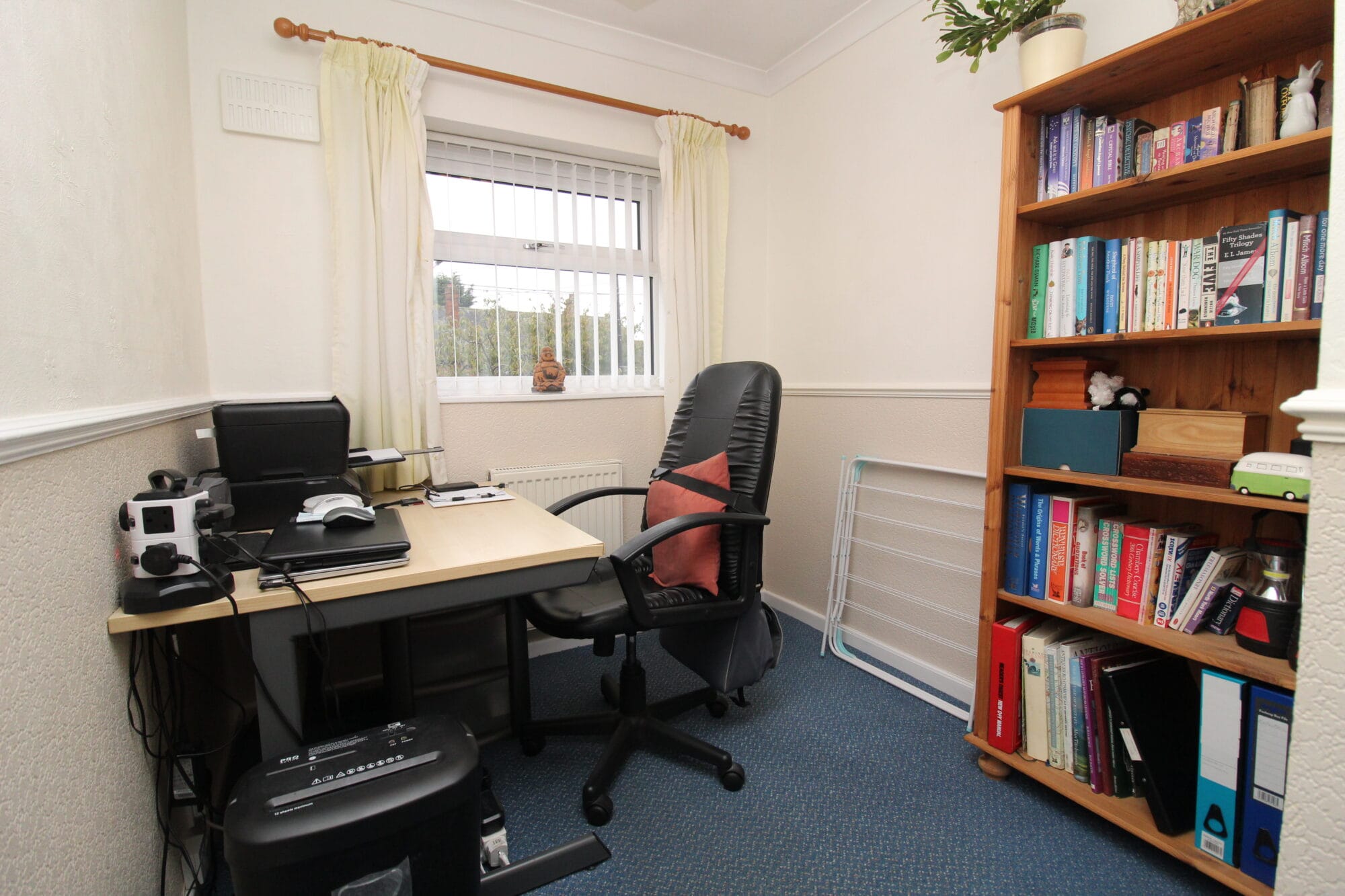 Single bedroom currently arranged as a home office