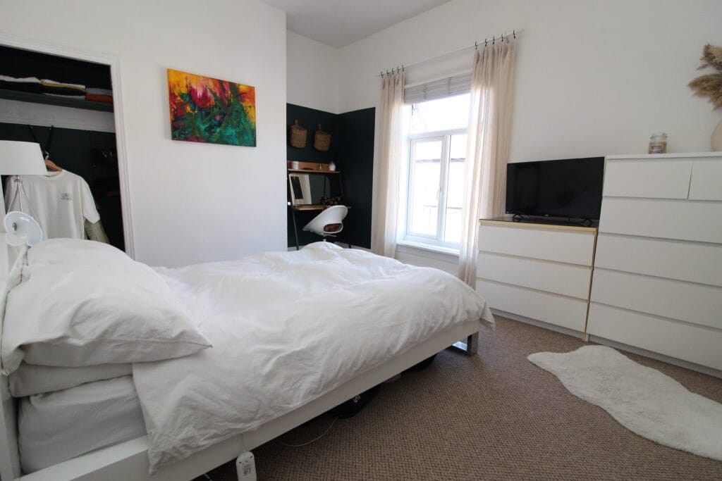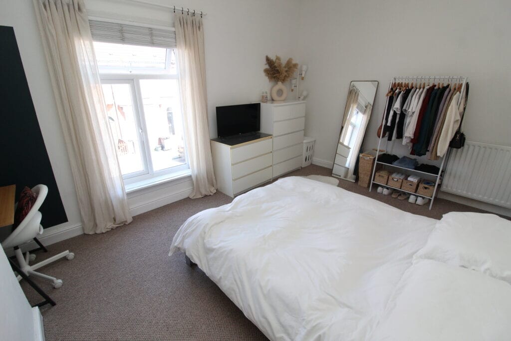Double bedroom with neutral décor and floor coverings, lots of natural light and space for double beds and wardrobes/dressing tables.