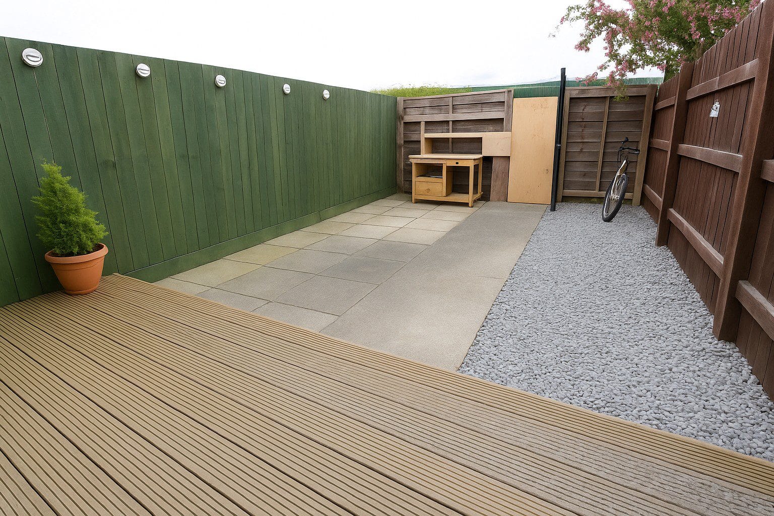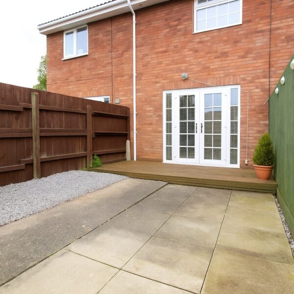 The rear garden is fully enclosed and designed for low maintenance, featuring a combination of decking, patio, and decorative stone - perfect for summer evenings or weekend barbecues. The front area is also neatly presented with gated access and easy-care gravelled finish.