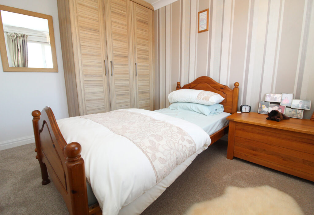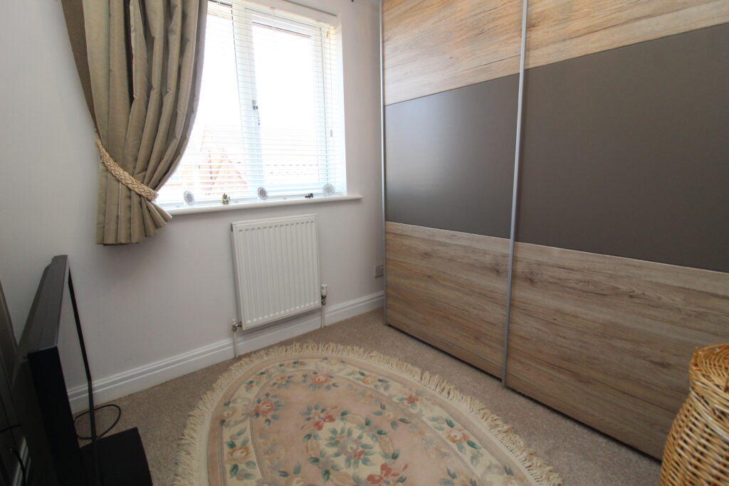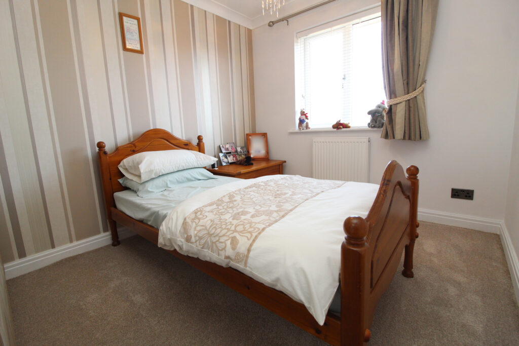 The second bedroom, located at the rear, enjoys views over the garden and is large enough to serve as a generous guest room or secondary double. The third bedroom offers excellent versatility and is ideal as a nursery, dressing room or home office.