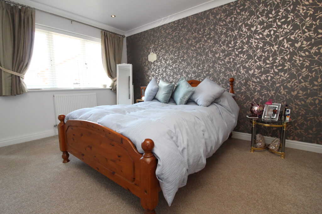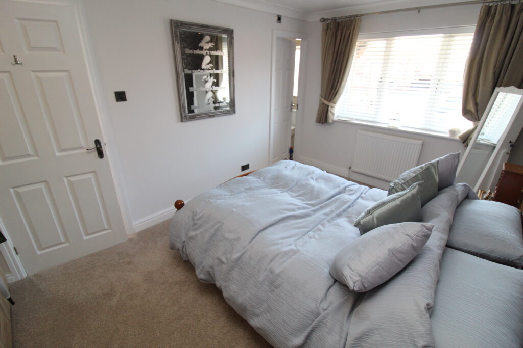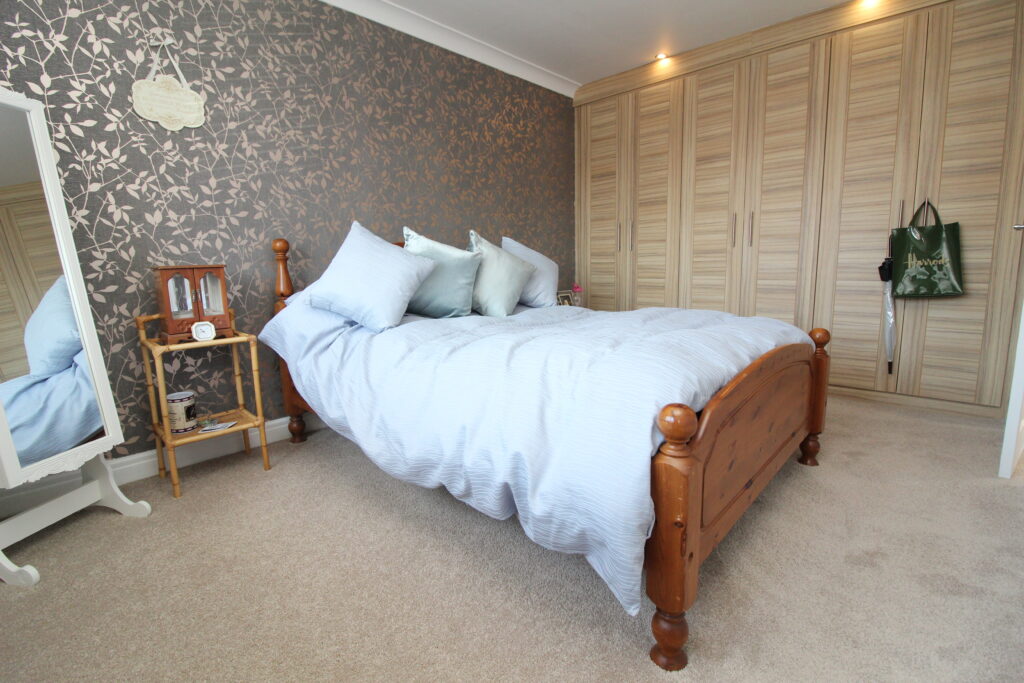 The principal bedroom is a luxurious front-facing suite, enhanced by full-height fitted wardrobes and a stylish en suite shower room with quality finishes.