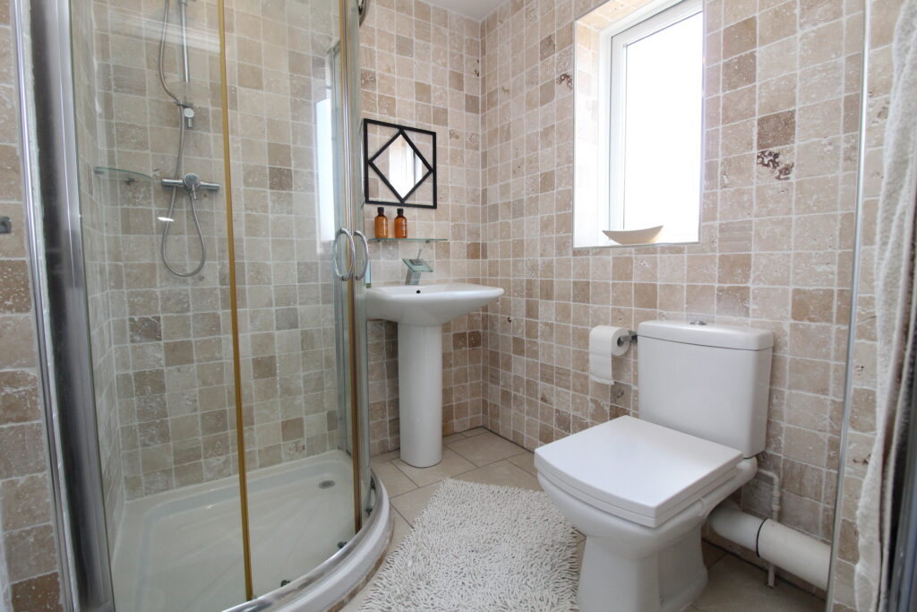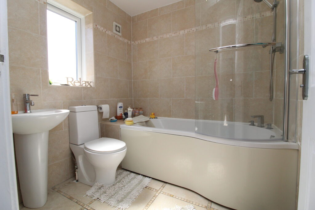 Completing the upstairs is a superb family bathroom, featuring elegant tiling and a spa-style P-shaped bath with overhead shower-ideal for both busy mornings and relaxing soaks.