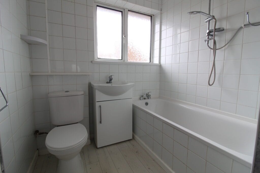 To the first floor are 3 well-proportioned bedrooms and white family bathroom with 3 piece suite and shower over bath. Modern splashback tiling.