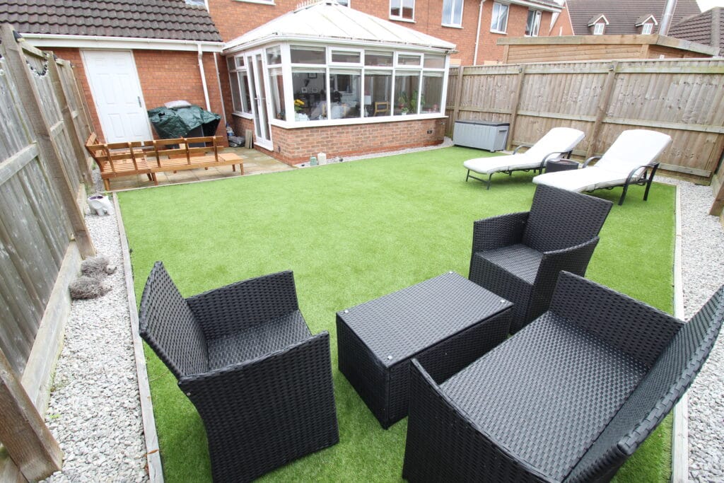 The front of the property has a low maintenance gravelled area with path leading to front door. There is a side drive giving off street parking and access to a brick built garage, which has a door from the garage leading to the low maintenance rear garden which is laid with artificial grass. Timber fencing to sides and rear.